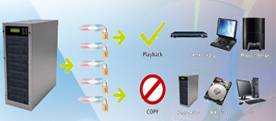 Video Guard is A breakthrough technology of DVD video protection duplicator. It enables you to create protected DVD video discs by a few steps of operation, no PC, special discs or proprietary software required. The technology embeds two copy modes: PC enable and PC disable. You can execute PC enable mode for playback on both of PC and DVD player, while PC disable mode for only play on DVD player to prevent the chance of PC copy.